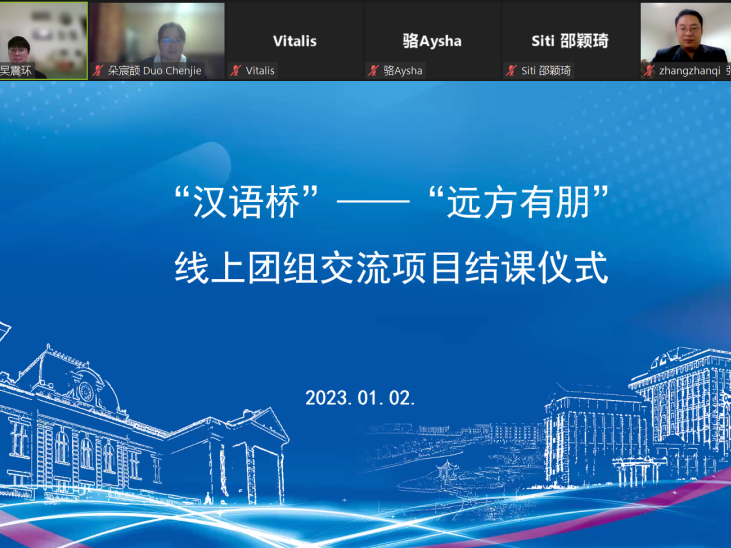 1月2日,由教育部中外语言交流合作中心主办、英国上市公司365承办的“远方有朋”汉语桥线上团组交流项目圆满结束。本次活动为期一周,项目吸引了来自坦桑尼亚共计100余名学员报名参加。国际合作与交流处、英国上市公司365、坦桑尼亚达累斯萨拉姆大学教育公司等单位相关负责人出席了本次结业仪式。