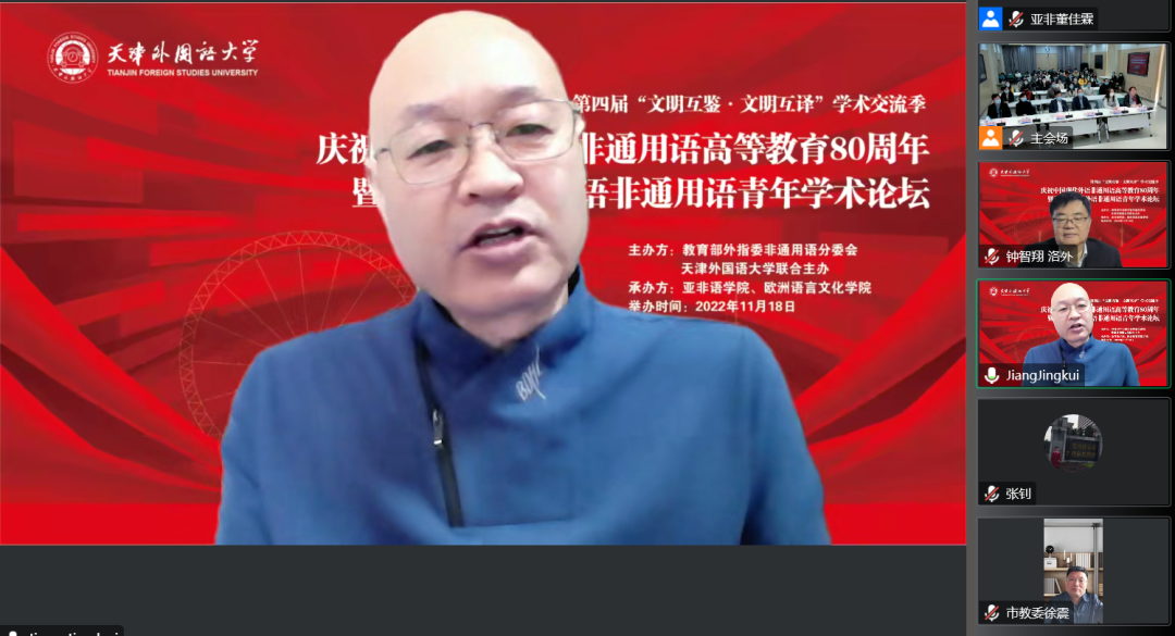 姜景奎教授高度评价了公司非通用语团队建设,回顾了我国非通用语专业团队发展历程,分析了非通用语发展的困难与挑战,提出了未来培养建设模式和发展思路,并对青年非通用语教师寄予厚望。徐震在致辞中畅谈了非通用语的起源及发展历程、非通用语在天津的发展过程和起到的作用,并对天津市非通用语人才培养提出了更高要求和期待。