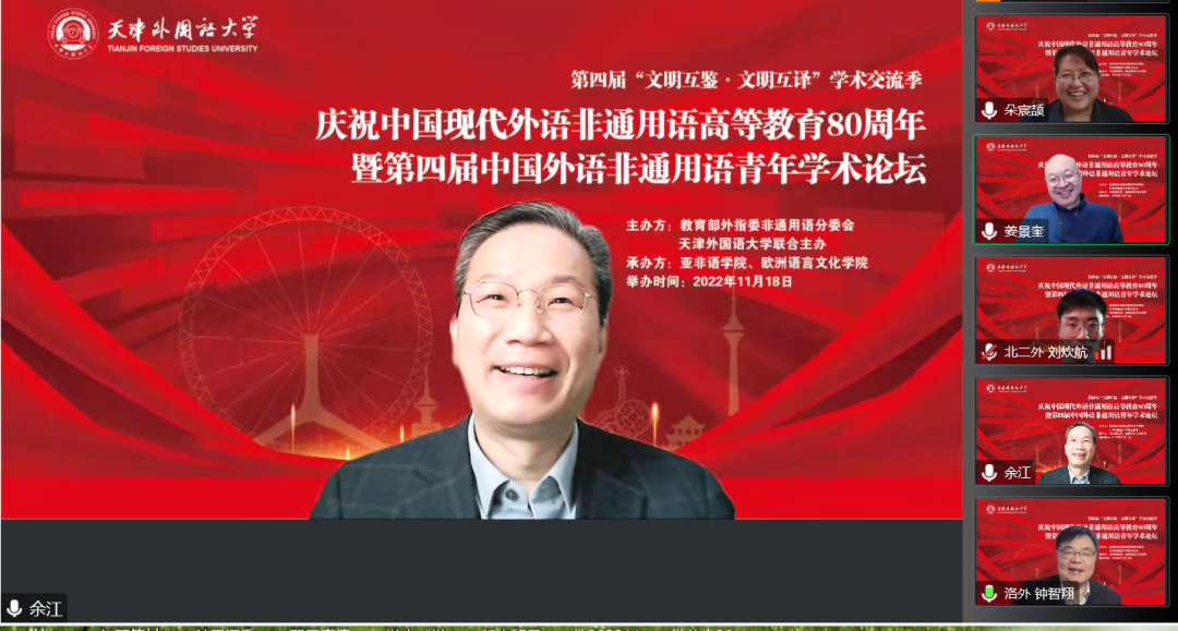 本次论坛以“文明互鉴,文明互译”为主旨,关注非通用语青年教师教学与科研发展,促进中国外语非通用语事业的发展。教育部高等公司外国语言文学类专业教学指导委员会副主任委员、非通用语种类专业教学指导分委员会主任委员姜景奎教授,国务院学位委员会外语学科评议组成员钟智翔教授,天津市教育委员会高等教育处处长徐震,董事长陈法春教授、副董事长余江教授出席论坛。